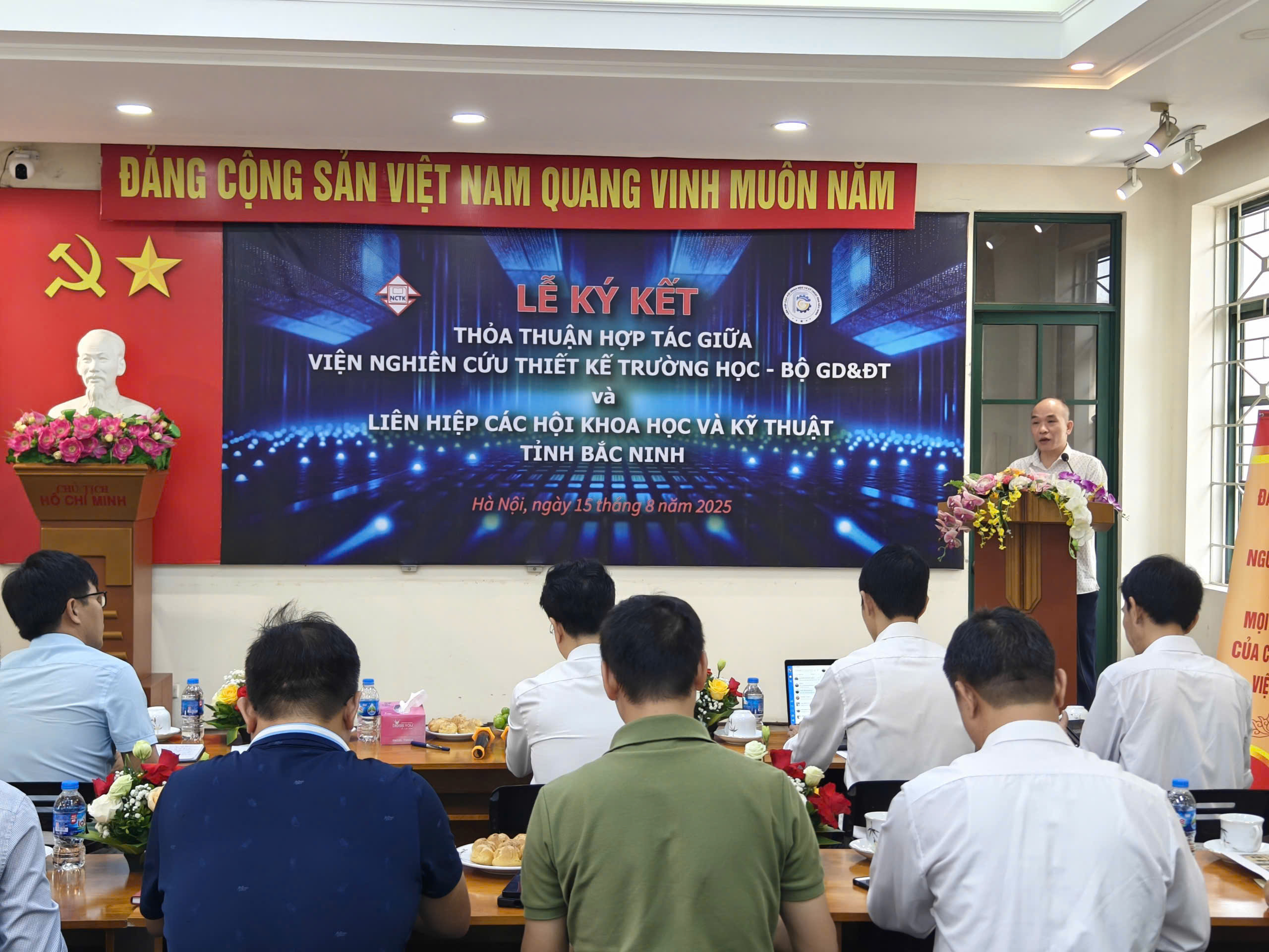 Sáng ngày 15/8/2025, tại trụ sở cơ quan 12-14 Lê Thánh Tông, phường Cửa Nam, TP.Hà Nội, Viện Nghiên cứu Thiết kế Trường học đã có buổi lễ ký kết Biên bản ghi nhớ với Liên hiệp các Hội Khoa học và Kỹ thuật tỉnh Bắc Ninh.