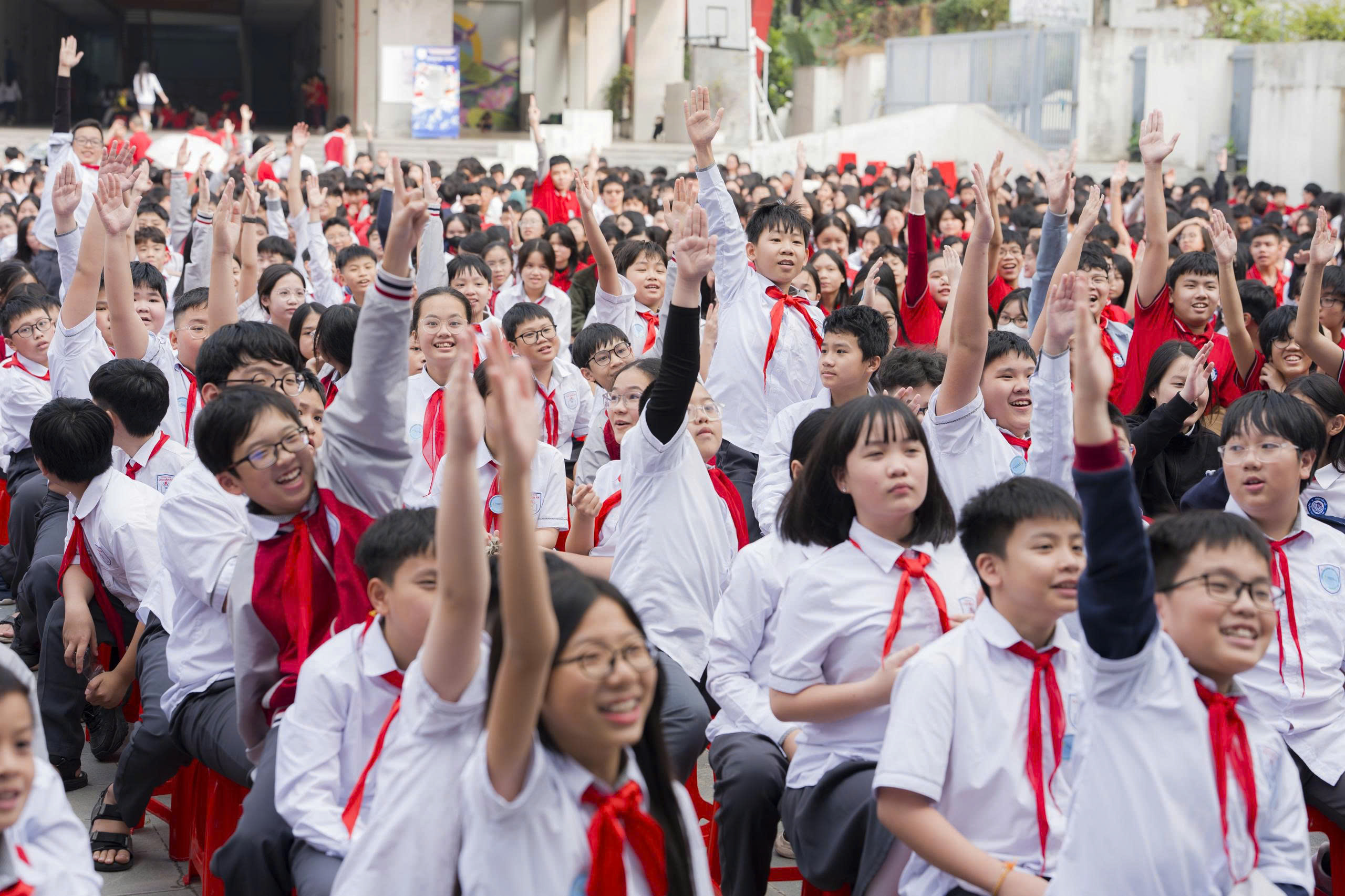 Học sinh hào hứng tham gia minigame trong buổi lễ phát động