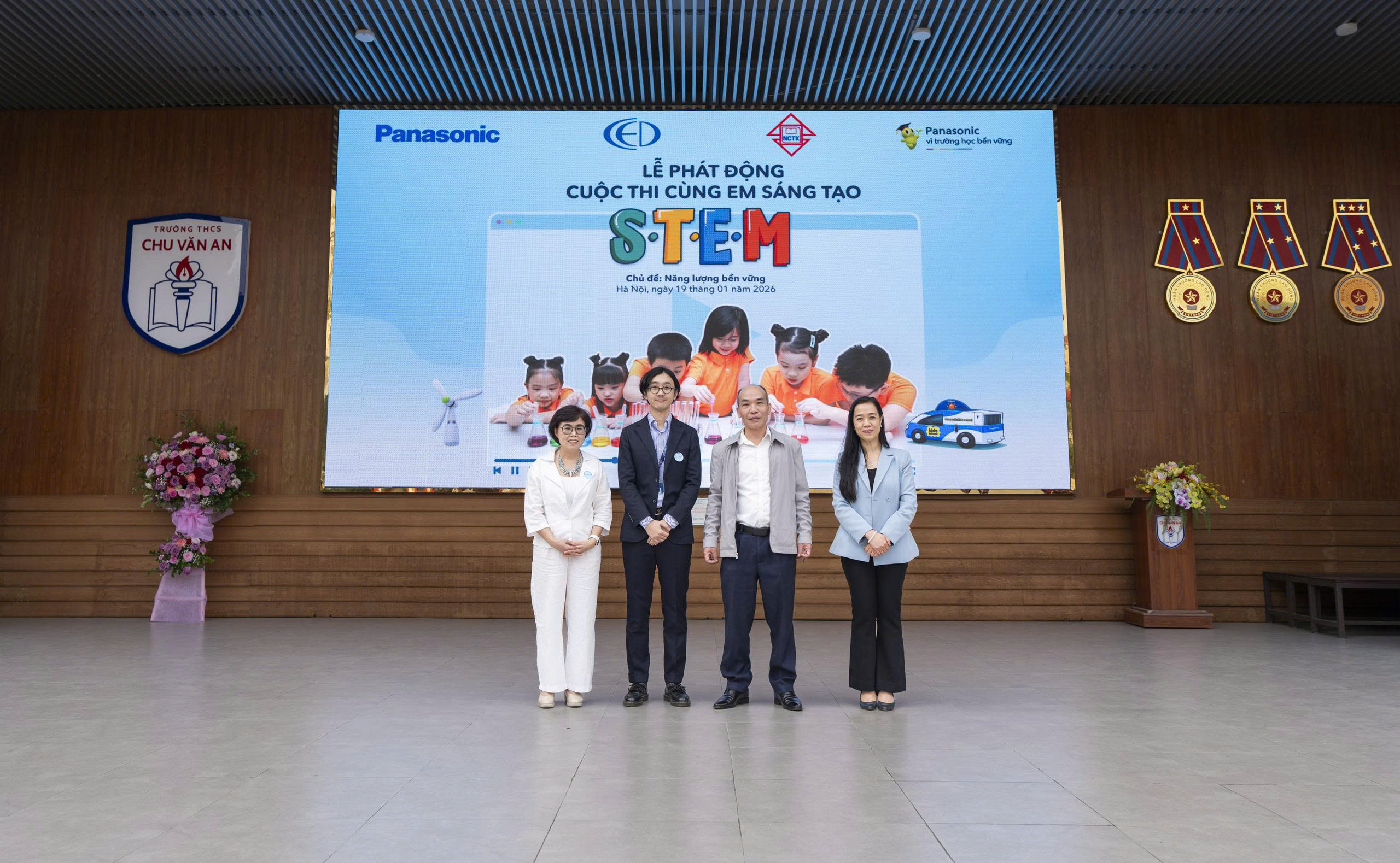 Vào hồi 15h00 ngày 19/01/2026, tại Trường THCS Chu Văn An, Hà Nội, Viện Nghiên cứu Thiết kế Trường học – Bộ Giáo dục và Đào tạo phối hợp với Công ty TNHH Panasonic Việt Nam và Trung tâm Giáo dục và Phát triển (CED) đã long trọng tổ chức Lễ phát động Cuộc thi “Cùng em sáng tạo STEM 2026”. Đây là hoạt động giáo dục ý nghĩa nhằm tiếp tục lan tỏa giáo dục STEM/STEAM và giáo dục trải nghiệm, tạo cơ hội để học sinh tiểu học và trung học cơ sở vận dụng kiến thức vào thực tiễn, gắn học tập với các vấn đề phát triển bền vững, đặc biệt trong lĩnh vực năng lượng bền vững.