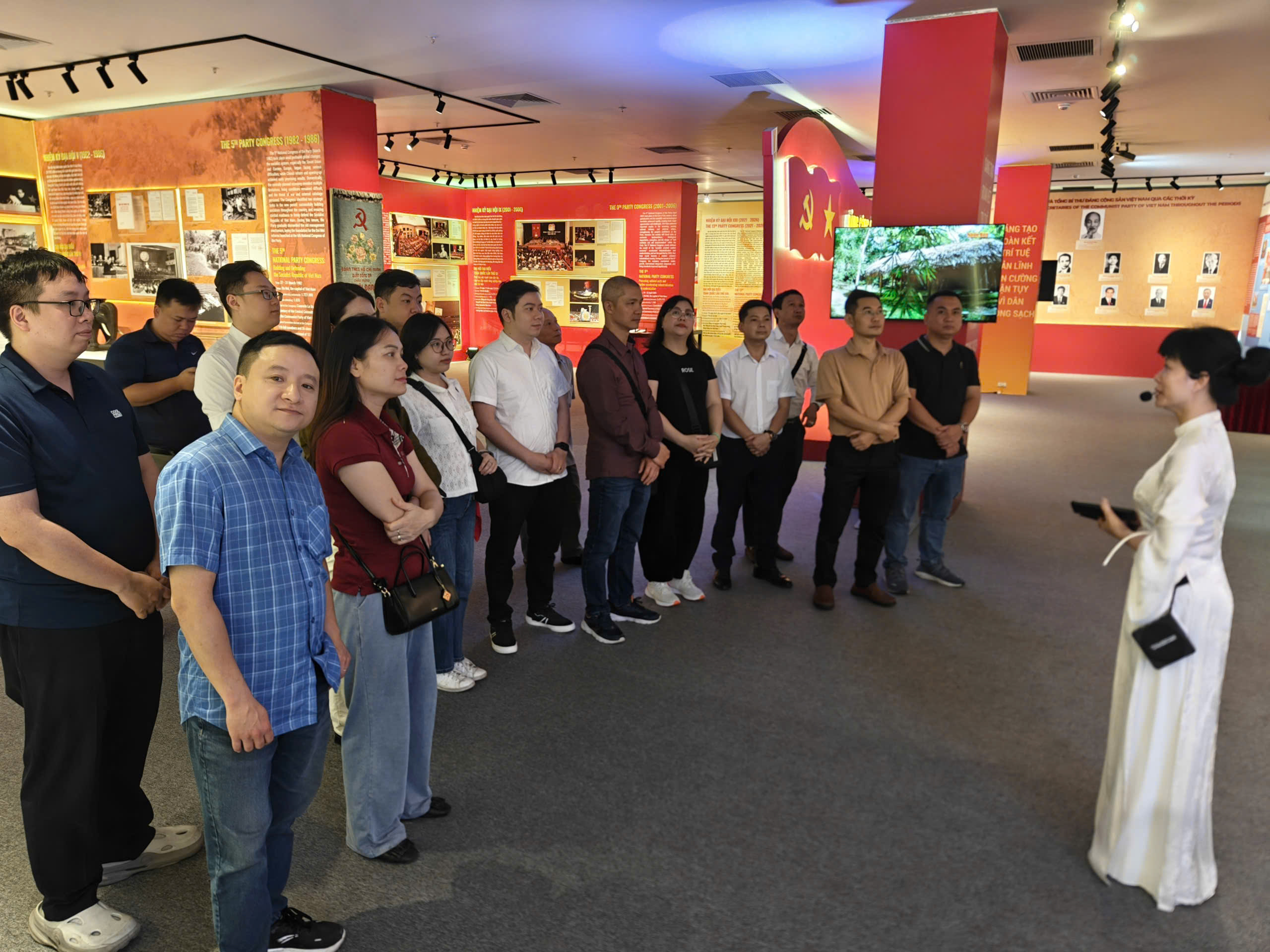 Tại trụ sở Cục Lưu trữ Văn phòng Trung ương Đảng, đoàn đã được trực tiếp tham quan hơn 200 tài liệu, hình ảnh, hiện vật quý giá. Đặc biệt, nhiều tư liệu lần đầu tiên được công bố, giúp người xem có cái nhìn chân thực và sâu sắc hơn về các kỳ Đại hội Đảng và kết quả đạt được qua từng nhiệm kỳ.